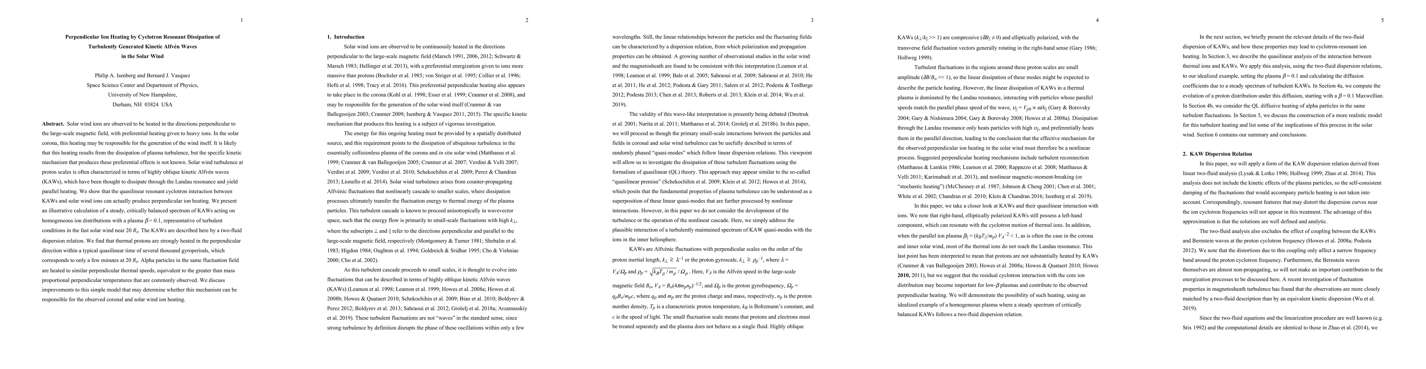 This paper investigates the cyclotron resonant dissipation of kinetic Alfvén waves in the solar wind, demonstrating that it can lead to preferential heating of ions perpendicular to the magnetic field, particularly affecting heavy ions like alpha particles. The study suggests this mechanism may explain the observed heating in the solar corona and the generation of the solar wind itself.