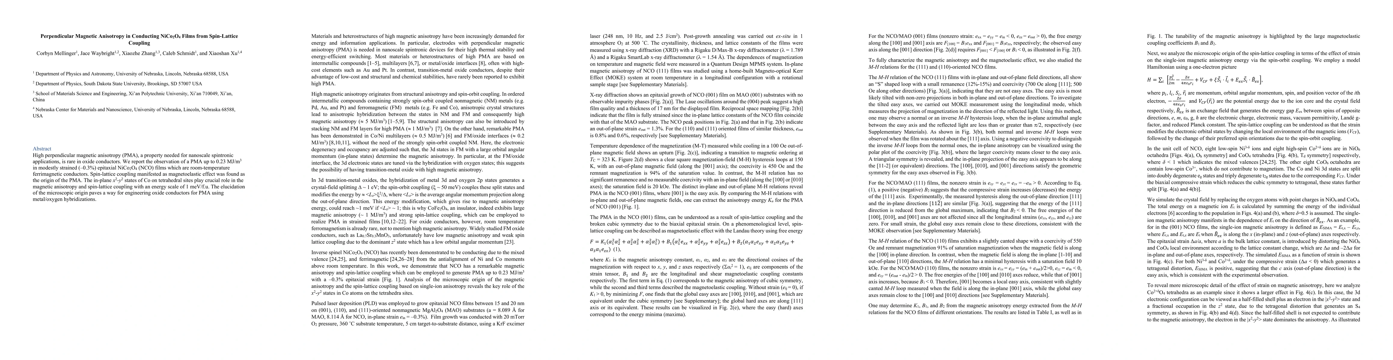 Researchers discovered high perpendicular magnetic anisotropy in conducting NiCo2O4 films, a property needed for nanoscale spintronic applications, due to magnetoelastic effects enabled by spin-lattice coupling.