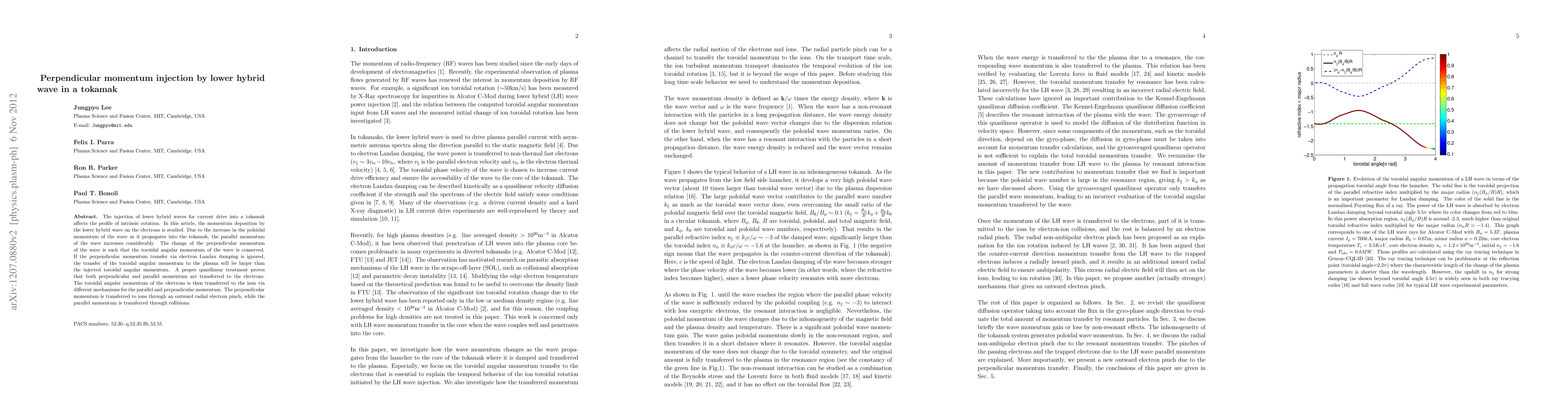 The paper presents a detailed quasilinear analysis of momentum transfer by lower hybrid waves in tokamaks, highlighting the roles of both parallel and perpendicular momentum components.