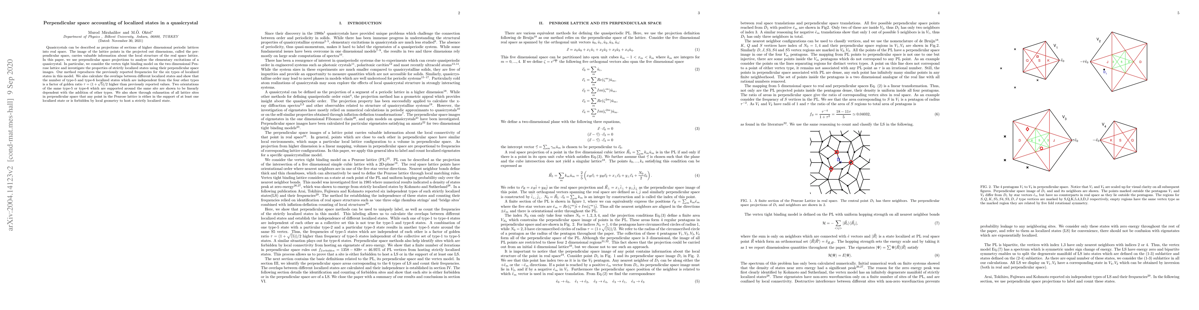 This paper explores the use of perpendicular space projection to analyze localized states in a quasicrystal, specifically the two-dimensional Penrose lattice. It reveals that perpendicular space accounting uncovers a higher number of independent localized states than previously reported, with a relationship governed by the golden ratio.