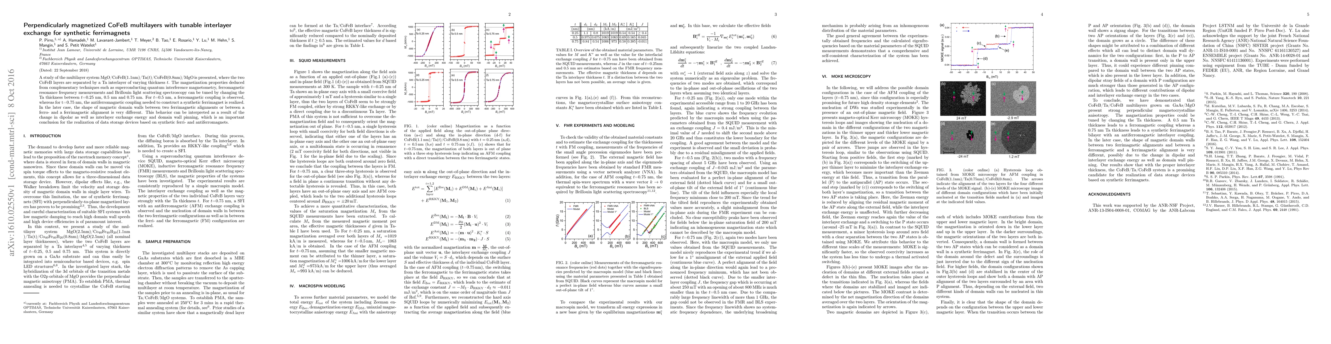 This study investigates MgO/CoFeB multilayers with tunable interlayer exchange by varying Ta thickness, showing tunable magnetization properties. For a Ta thickness of 0.75 nm, antiferromagnetic coupling is achieved, enabling the formation of synthetic ferrimagnets, which is crucial for advanced data storage technologies.