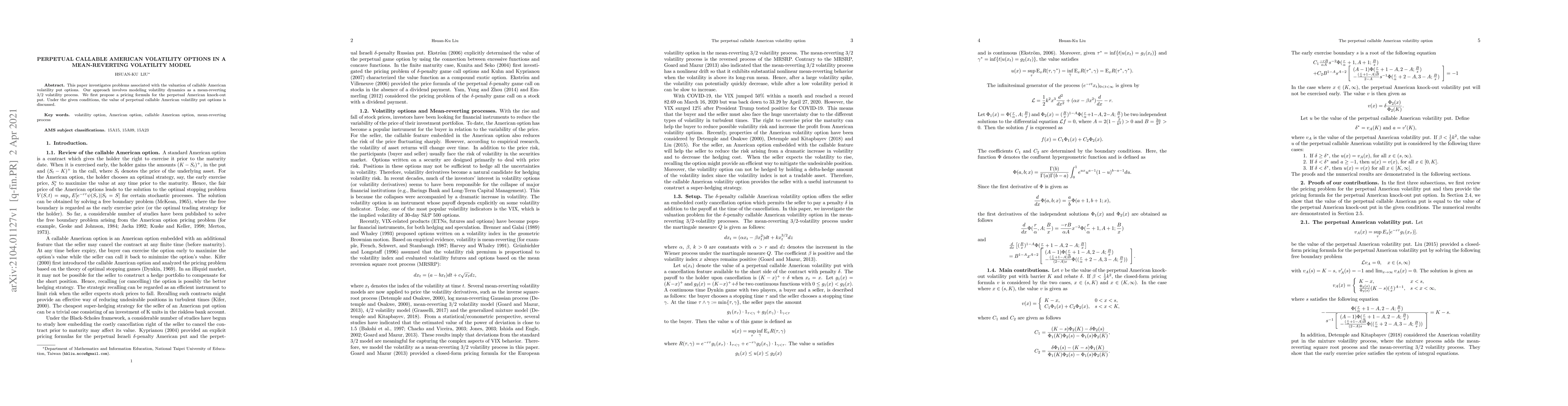 This paper develops a valuation method for perpetual callable American volatility put options using a mean-reverting 3/2 volatility process. It proposes a pricing formula for the perpetual American knock-out put and discusses the value of perpetual callable American volatility put options.