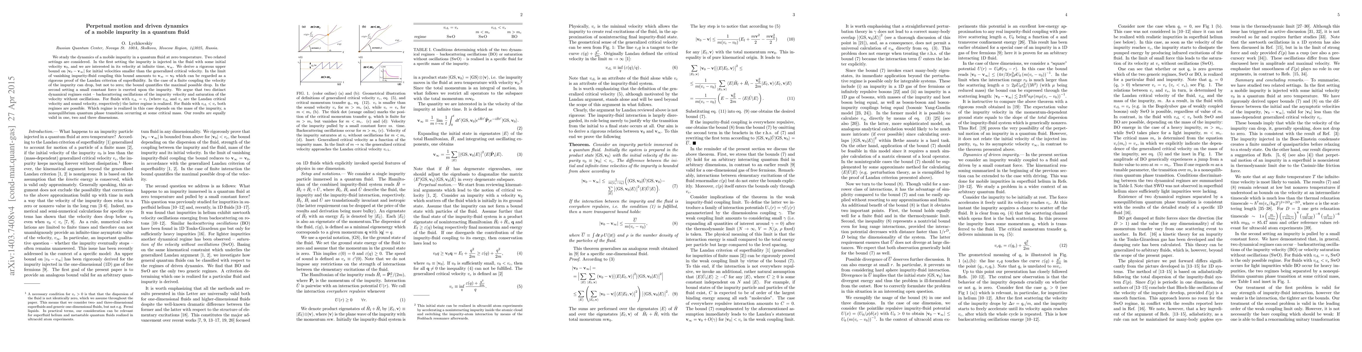 This paper investigates the dynamics of a mobile impurity in a quantum fluid at zero temperature, focusing on its velocity behavior under different conditions. It establishes a rigorous upper bound on the velocity difference between initial and infinite time states, proving the Landau criterion in the limit of weak coupling. It also explores the impurity's response to a constant force, identifying two dynamical regimes: backscattering oscillations and velocity saturation, with the regime realized depending on the impurity's mass and the fluid's properties.