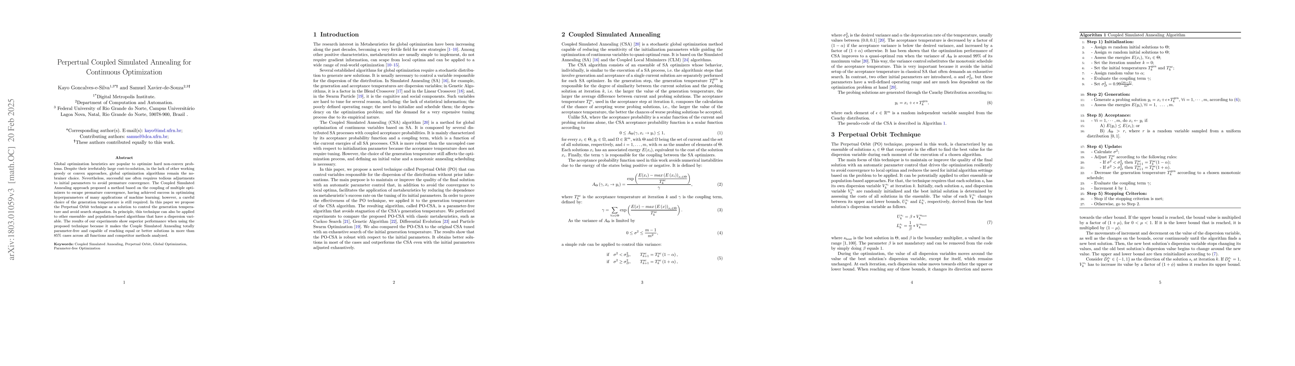 This paper introduces Perpetual Orbit Coupled Simulated Annealing (PO-CSA), a novel optimization technique that enhances the robustness of the Coupled Simulated Annealing algorithm by controlling the generation temperature. PO-CSA outperformed five reference algorithms in most tested optimization problems, demonstrating superior performance and efficiency, especially with limited parameter tuning.