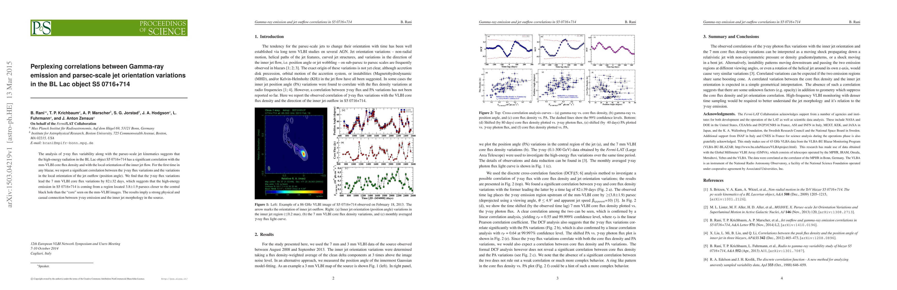 This study reveals a significant correlation between gamma-ray flux variations and the local orientation of the parsec-scale jet in the BL Lac object S5 0716+714, suggesting high-energy emission originates from a region closer to the central black hole than previously observed. The gamma-ray flux leads mm-VLBI core flux variations by 82±32 days, indicating a strong causal link between gamma-ray emission and jet morphology.