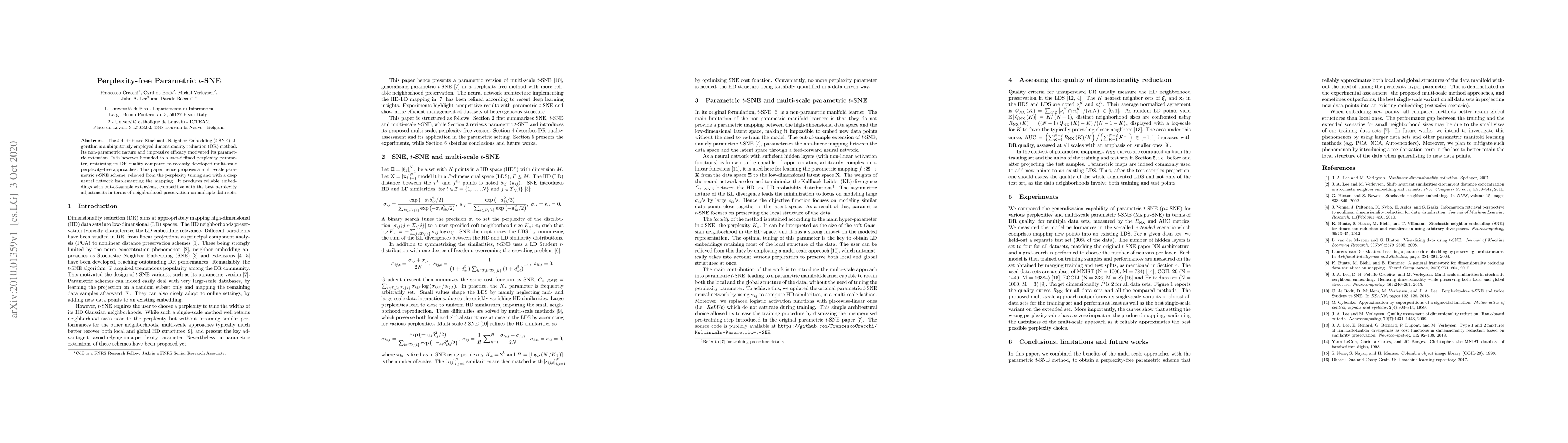 This paper introduces a multi-scale parametric version of t-SNE, eliminating the need for perplexity tuning, and employs a deep neural network for mapping. It achieves reliable embeddings and competitive neighborhood preservation across various datasets.