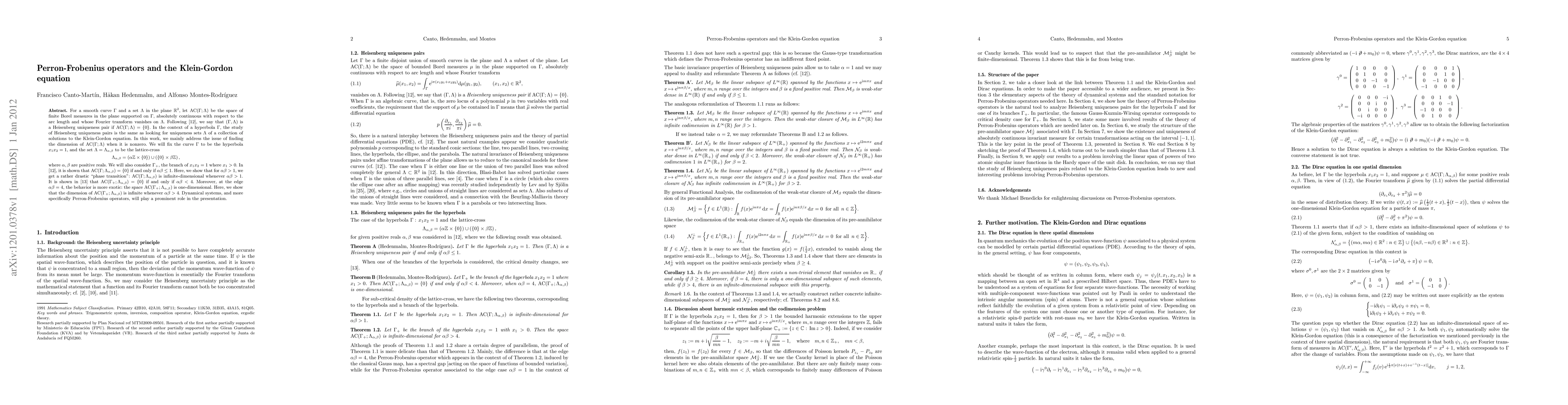 We study the non-uniqueness sets for solutions to the Klein-Gordon equation in 1 space dimension, for solutions whose Fourier transform is a finite complex measure absolutely continuous with respect to arc length. We show that generally, in the non-unique case for lattice-crosses, the space of solutions that vanish there is infinite-dimensional.