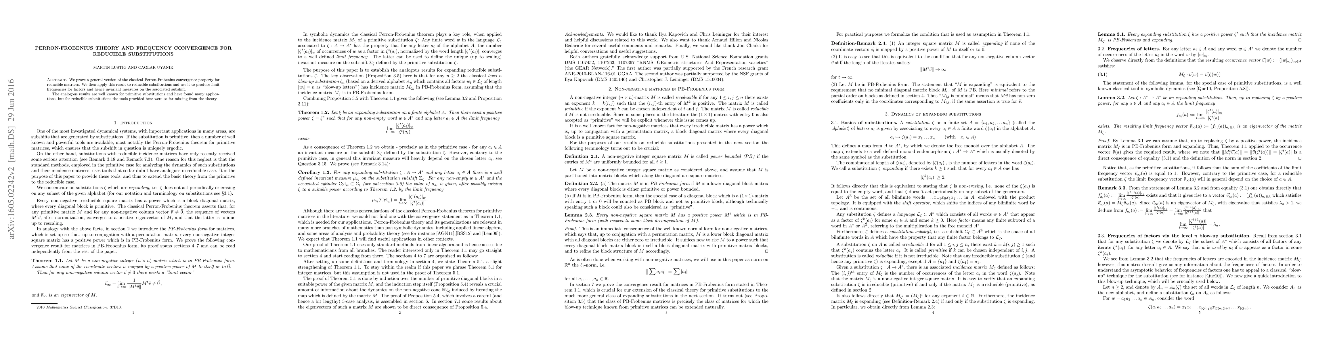 This paper establishes a general Perron-Frobenius convergence property for reducible matrices and applies it to reducible substitutions, yielding limit frequencies for factors and invariant measures on the associated subshift, a significant advancement in the theory of reducible substitutions.