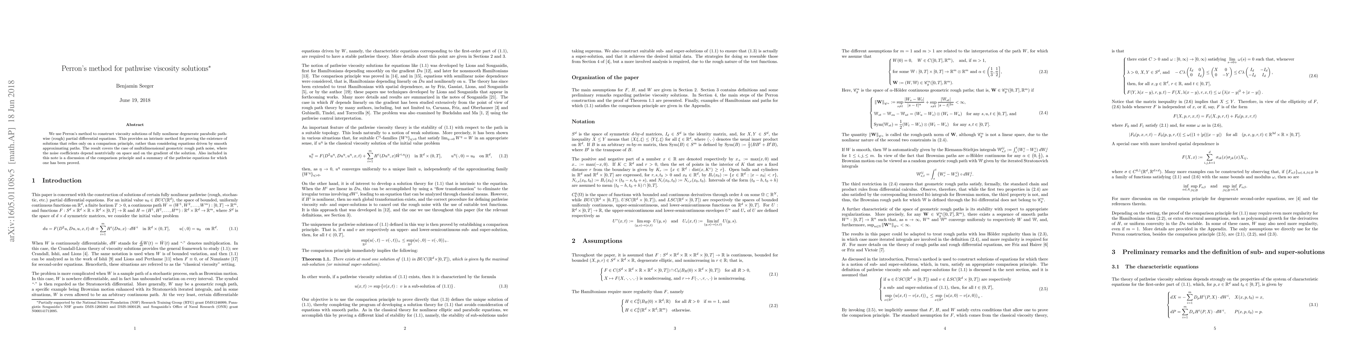We use Perron's method to construct viscosity solutions of fully nonlinear degenerate parabolic pathwise (rough) partial differential equations. This provides an intrinsic method for proving the existence of solutions that relies only on a comparison principle, rather than considering equations driven by smooth approximating paths. The result covers the case of multidimensional geometric rough path noise, where the noise coefficients depend nontrivially on space and on the gradient of the solution. Also included in this note is a discussion of the comparison principle and a summary of the pathwise equations for which one has been proved.