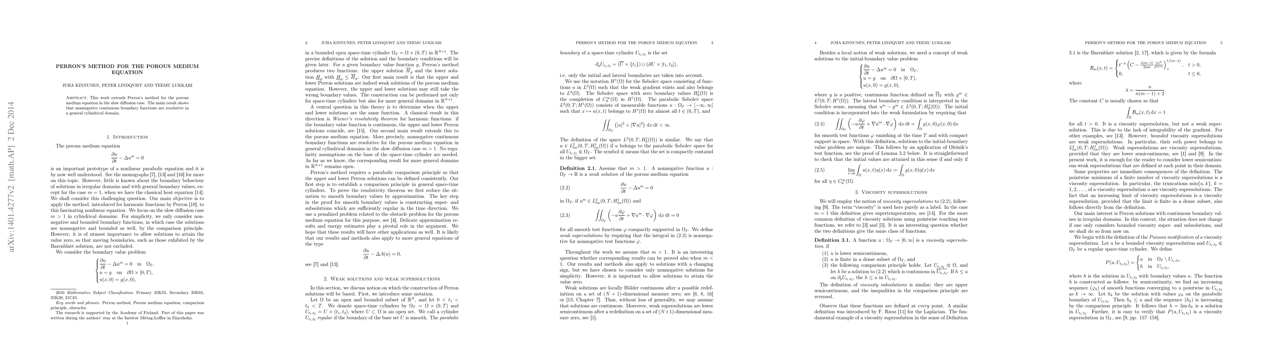 Summary: This paper extends Perron's method to the porous medium equation in slow diffusion scenarios, proving that nonnegative continuous boundary functions are resolutive within a general cylindrical domain. The study provides a robust framework for understanding diffusion processes in porous media.