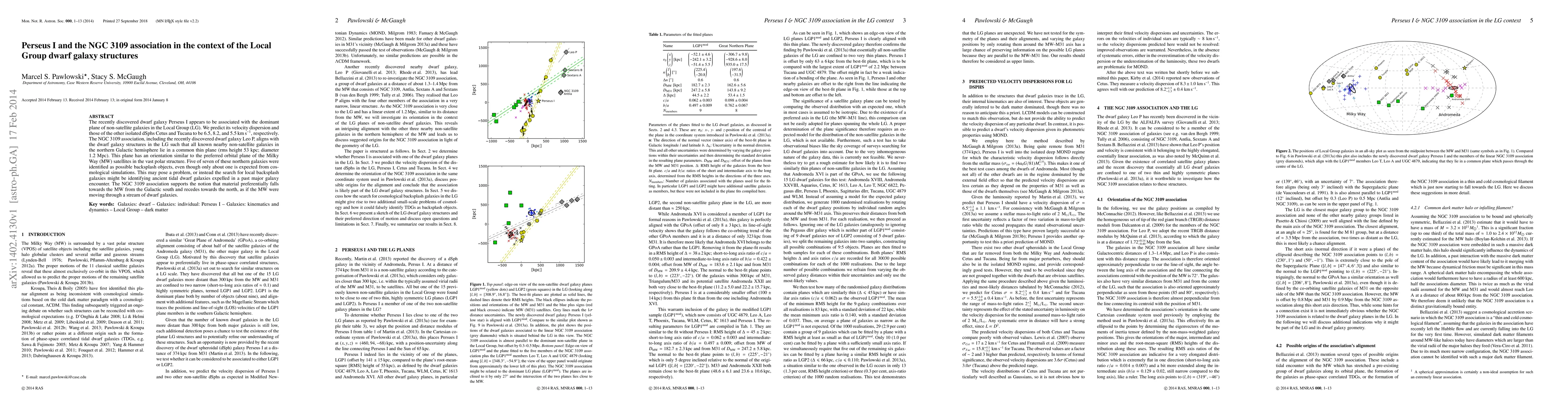 The study explores the association of the newly discovered dwarf galaxy Perseus I with the Local Group's non-satellite galaxies, predicting their velocity dispersions. It finds that Perseus I and the NGC 3109 association, including Leo P, align in a thin plane, suggesting a common origin and movement pattern relative to the Milky Way.