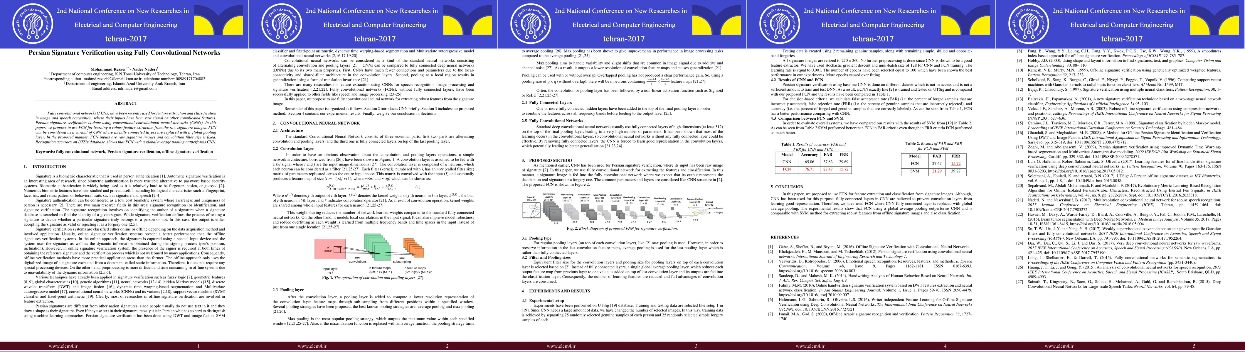 This paper proposes using fully convolutional networks (FCNs) for Persian signature verification, replacing traditional convolutional neural networks (CNNs). FCNs, which replace fully connected layers with global pooling, achieve higher recognition accuracy on the UTSig database compared to CNNs.