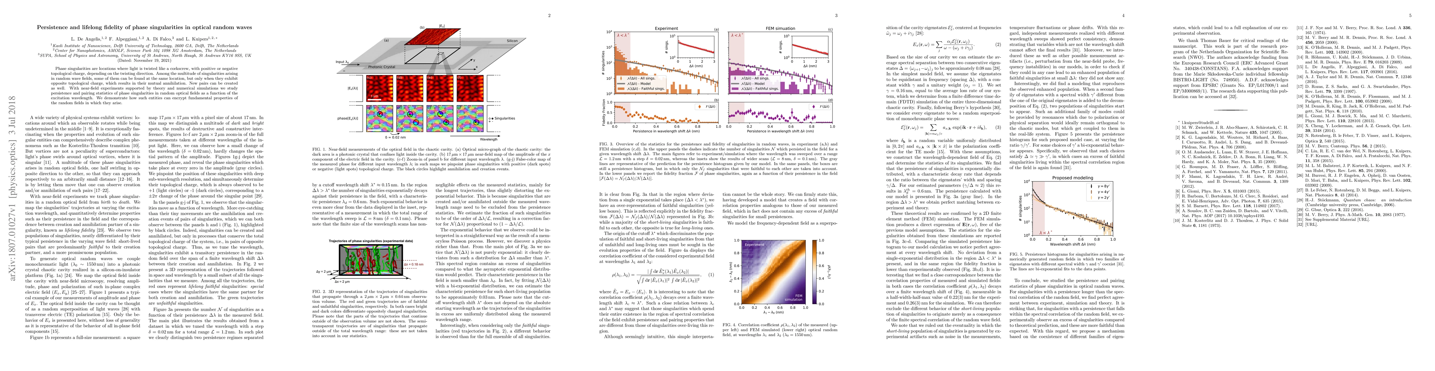 Phase singularities are locations where light is twisted like a corkscrew, with positive or negative topological charge depending on the twisting direction. Among the multitude of singularities arising in random wave fields, some can be found at the same location, but only when they exhibit opposite topological charge, which results in their mutual annihilation. New pairs can be created as well. With near-field experiments supported by theory and numerical simulations, we study the persistence and pairing statistics of phase singularities in random optical fields as a function of the excitation wavelength. We demonstrate how such entities can encrypt fundamental properties of the random fields in which they arise.