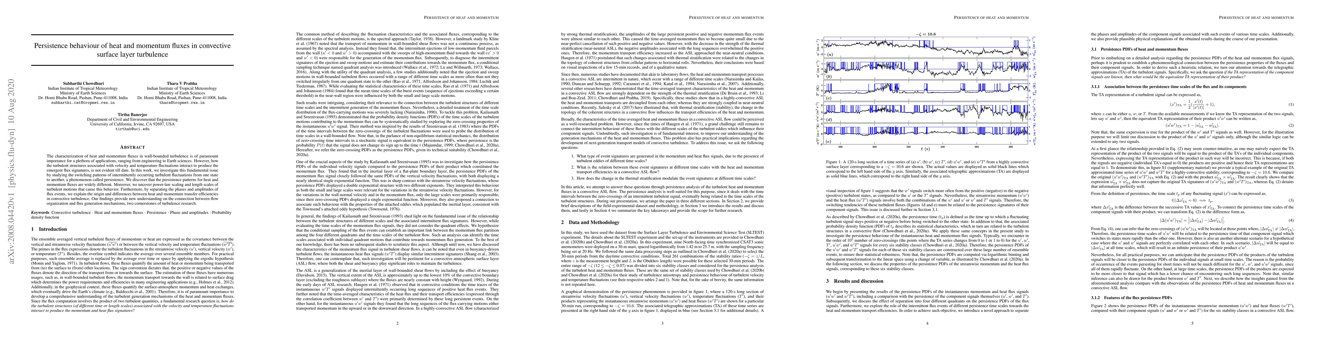 This study investigates the persistence behavior of heat and momentum fluxes in convective surface layer turbulence, revealing distinct patterns and power-law scaling in their interactions. The research uncovers the differences in flux generation mechanisms, providing new insights into the relationship between flow organization and flux signatures in turbulence.