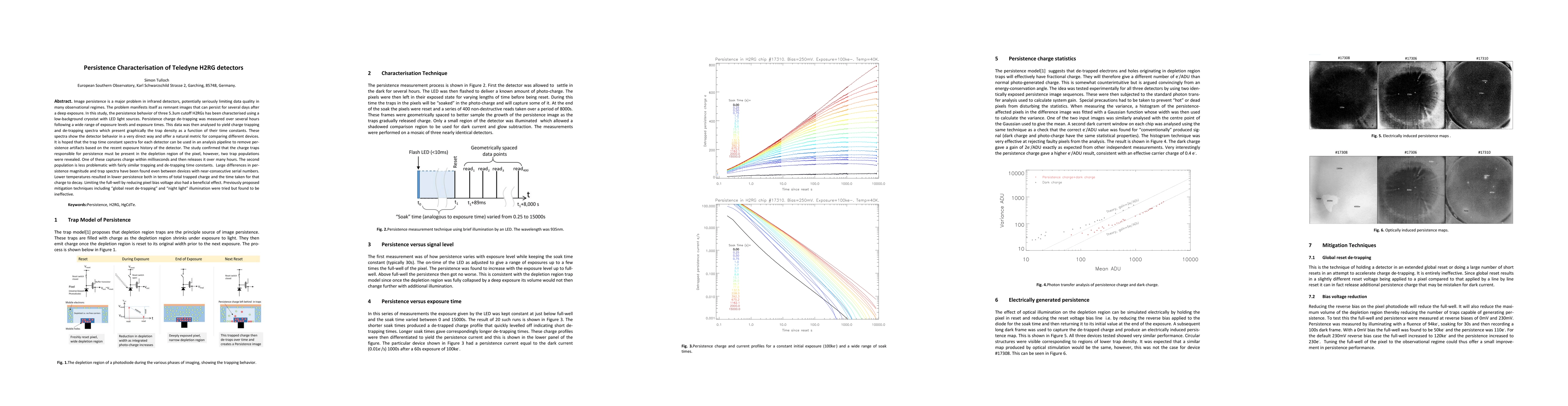 This study characterizes the persistence behavior of three H2RG infrared detectors, revealing two distinct charge trap populations with different trapping and de-trapping time constants. Lower temperatures and reduced pixel bias voltages were found to mitigate persistence, while previously proposed mitigation techniques were ineffective.