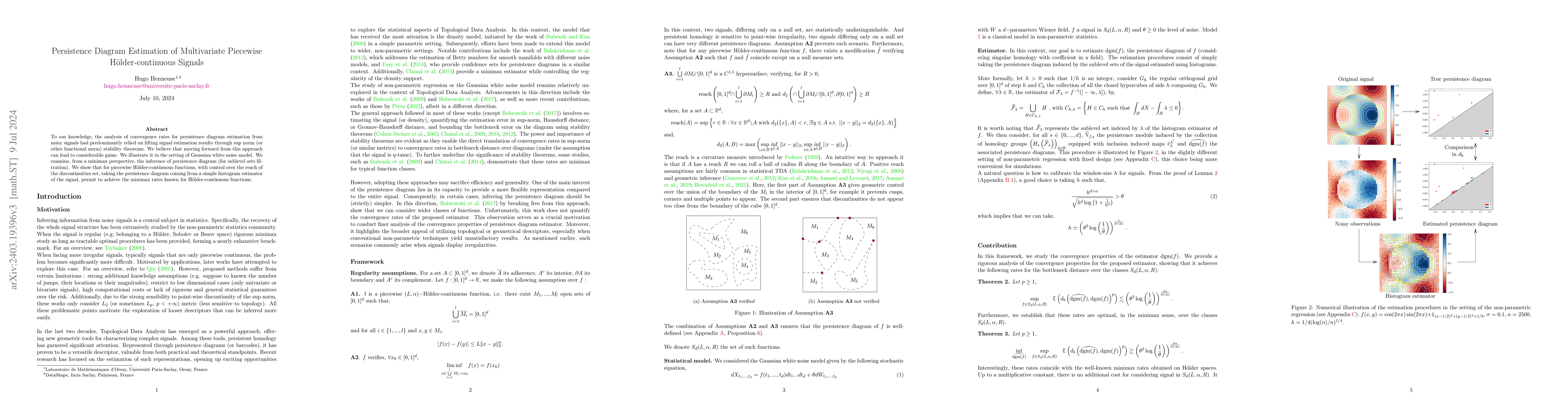 This paper investigates the convergence rates of persistence diagram estimation for multivariate piecewise H\"older-continuous signals, proposing an alternative to existing methods reliant on sup norm stability. Through a Gaussian white noise model and minimax analysis, it demonstrates that a histogram estimator can achieve optimal minimax rates for these functions.