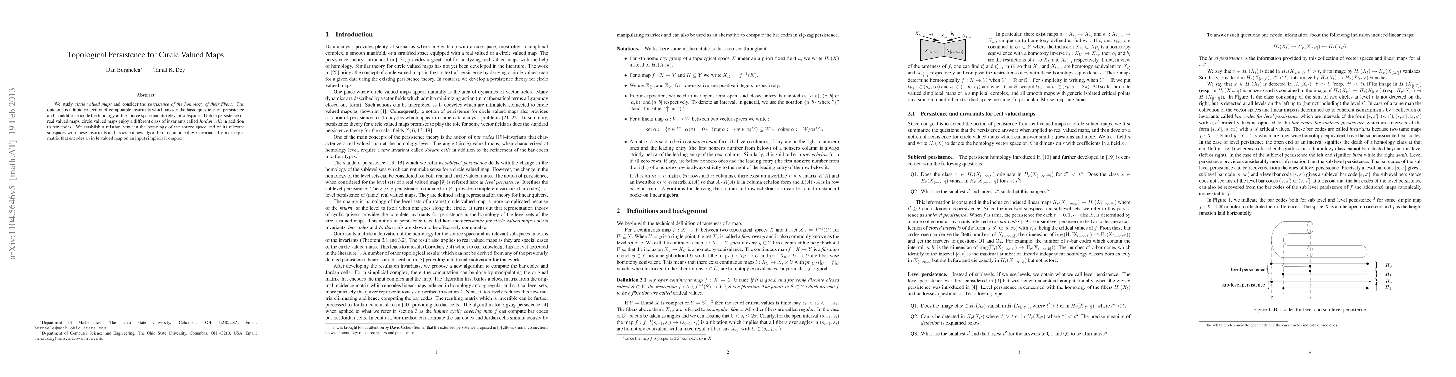 A topological persistence approach was used to analyze circle-valued maps