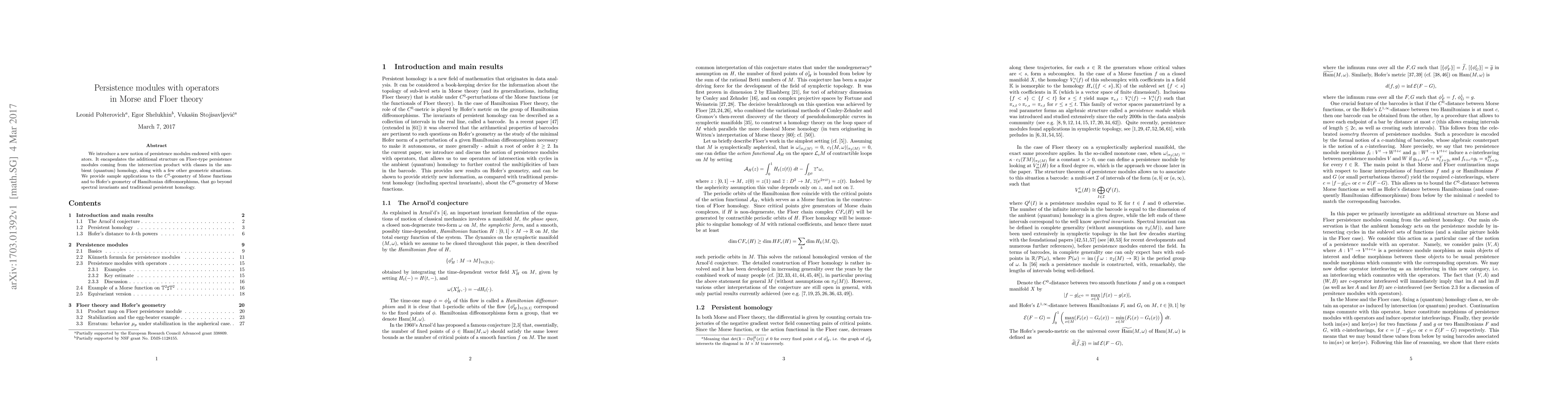This paper introduces persistence modules equipped with operators to capture additional structures in Floer-type persistence modules, applying this framework to $C^0$-geometry of Morse functions and Hofer's geometry of Hamiltonian diffeomorphisms, extending beyond traditional spectral invariants and persistent homology.