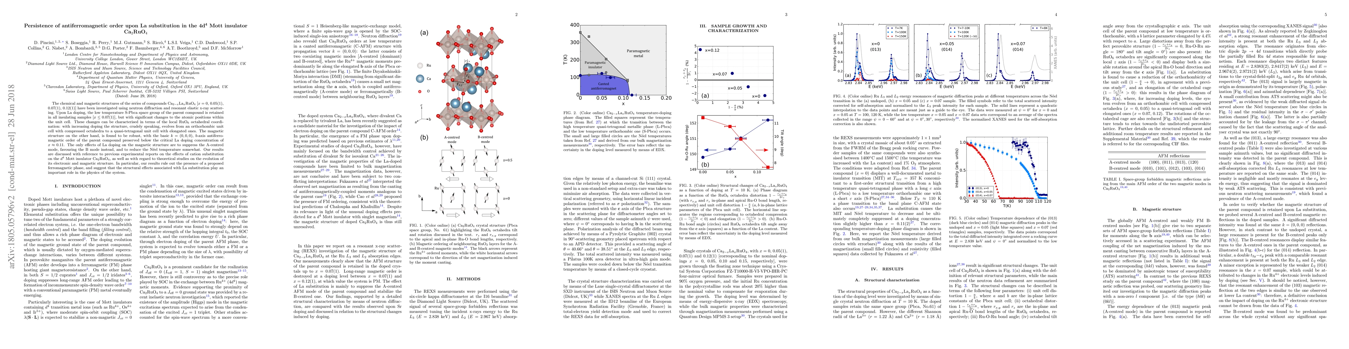 Researchers investigated how substituting lanthanum for calcium in a specific Mott insulator affects its magnetic order, finding that the antiferromagnetic structure remains robust despite changes to its atomic positions.