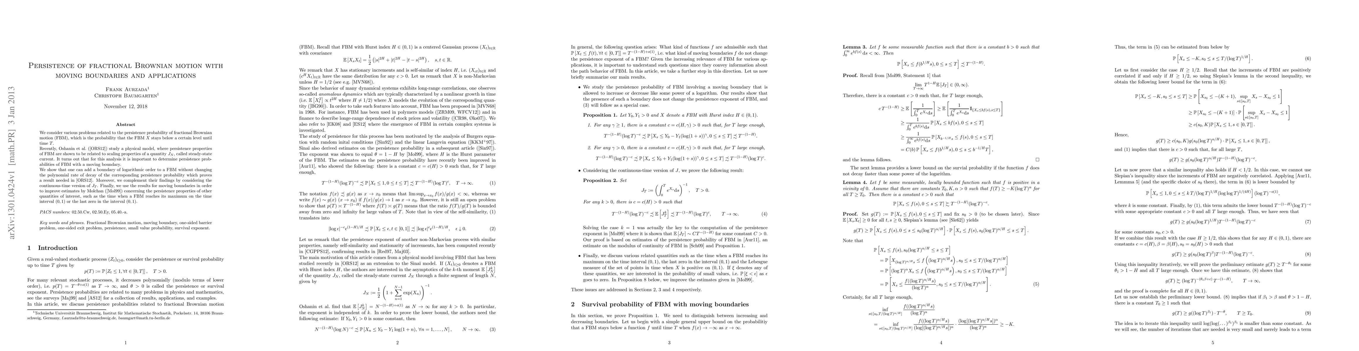 We consider various problems related to the persistence probability of fractional Brownian motion (FBM), which is the probability that the FBM $X$ stays below a certain level until time $T$. Recently, Oshanin et al. study a physical model where persistence properties of FBM are shown to be related to scaling properties of a quantity $J_N$, called steady-state current. It turns out that for this analysis it is important to determine persistence probabilities of FBM with a moving boundary. We show that one can add a boundary of logarithmic order to a FBM without changing the polynomial rate of decay of the corresponding persistence probability which proves a result needed in Oshanin et al. Moreover, we complement their findings by considering the continuous-time version of $J_N$. Finally, we use the results for moving boundaries in order to improve estimates by Molchan concerning the persistence properties of other quantities of interest, such as the time when a FBM reaches its maximum on the time interval $(0,1)$ or the last zero in the interval $(0,1)$.