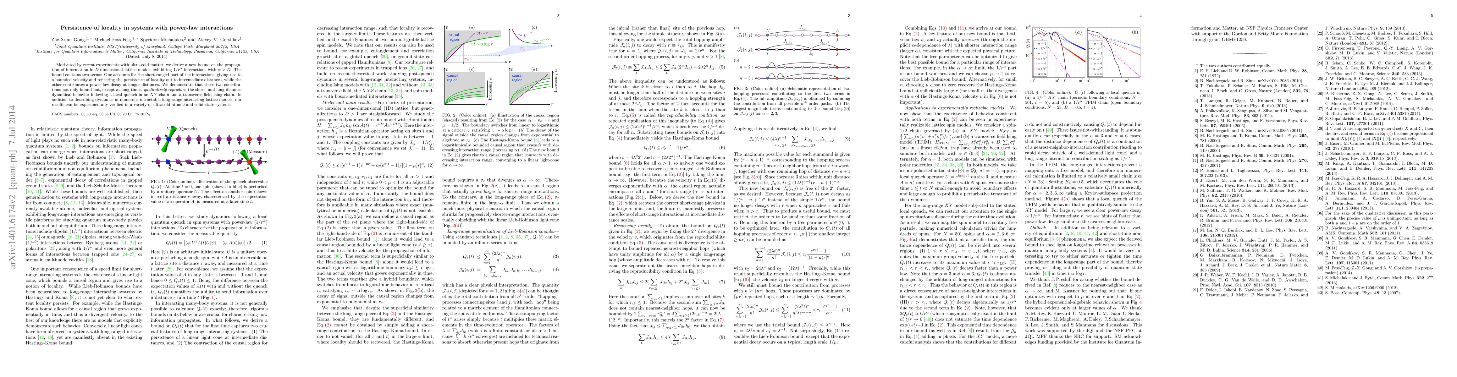 Motivated by recent experiments with ultra-cold matter, we derive a new bound on the propagation of information in $D$-dimensional lattice models exhibiting $1/r^{\alpha}$ interactions with $\alpha>D$. The bound contains two terms: One accounts for the short-ranged part of the interactions, giving rise to a bounded velocity and reflecting the persistence of locality out to intermediate distances, while the other contributes a power-law decay at longer distances. We demonstrate that these two contributions not only bound but, except at long times, \emph{qualitatively reproduce} the short- and long-distance dynamical behavior following a local quench in an $XY$ chain and a transverse-field Ising chain. In addition to describing dynamics in numerous intractable long-range interacting lattice models, our results can be experimentally verified in a variety of ultracold-atomic and solid-state systems.
