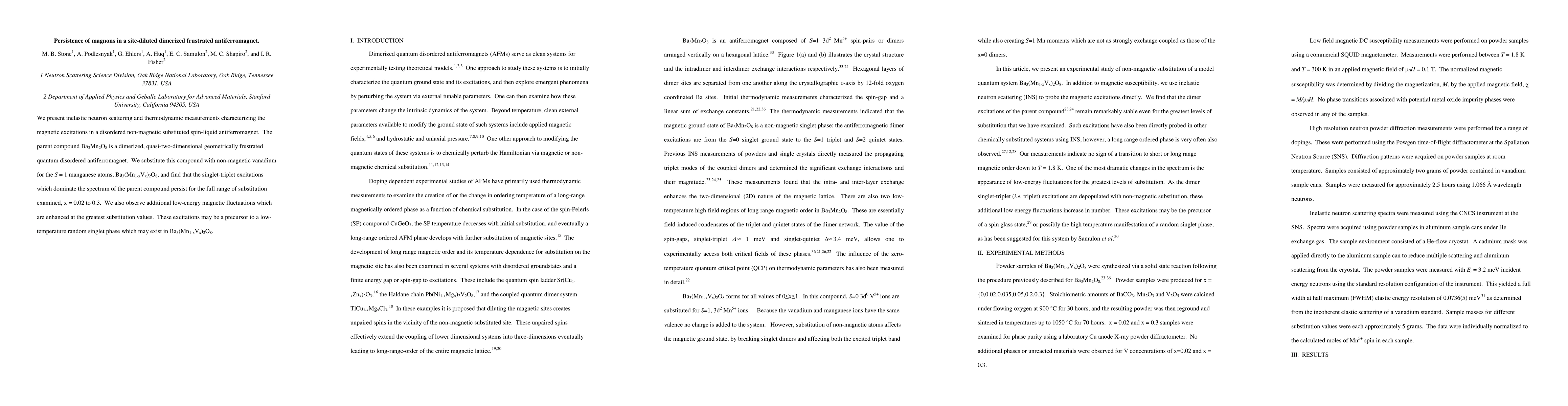 The work distinguishes itself by examining the effect of non-magnetic vanadium substitution on the magnetic excitations of Ba3Mn2O8, revealing the persistence of singlet-triplet excitations and additional low-energy fluctuations that may signify a low-temperature random singlet phase.