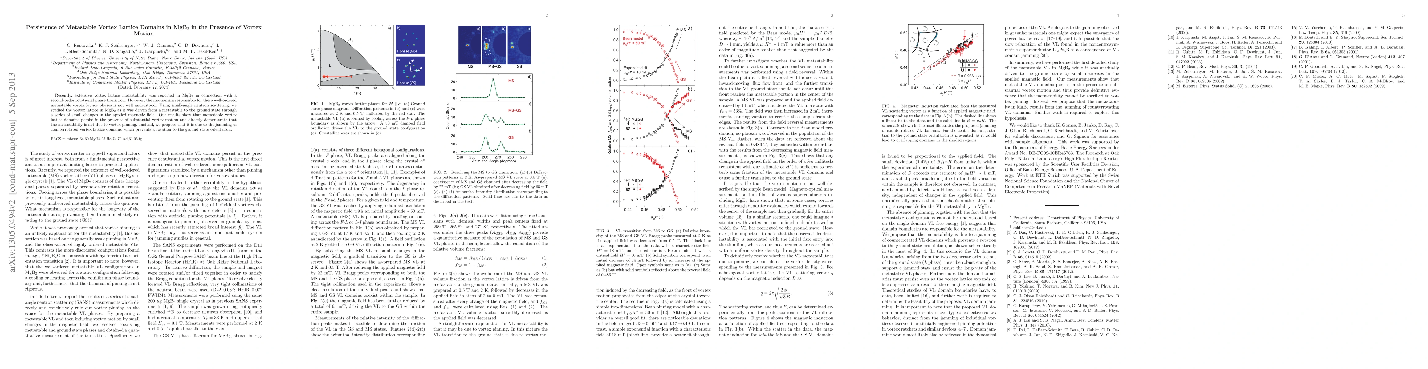 This study reveals that metastable vortex lattice domains in MgB2 persist despite significant vortex motion, as shown through small-angle neutron scattering. The findings suggest that the metastability is not caused by vortex pinning but rather by the jamming of counterrotated vortex lattice domains.