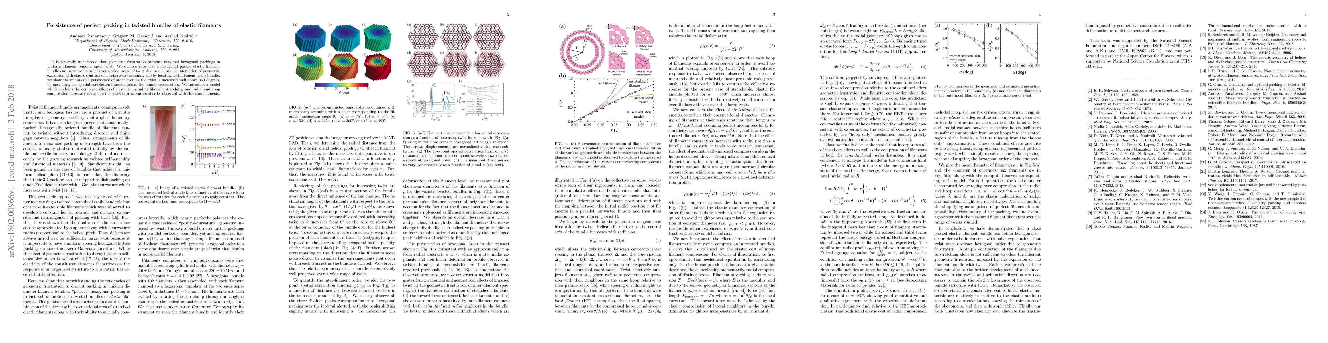 This paper demonstrates that twisted bundles of elastic filaments can maintain hexagonal packing order despite geometric frustration, due to the balance between geometric expansion and elastic contraction. Using x-ray scanning and spatial correlation measurements, the authors show the persistence of order even beyond 360 degrees of twist, and propose a model to explain this phenomenon.