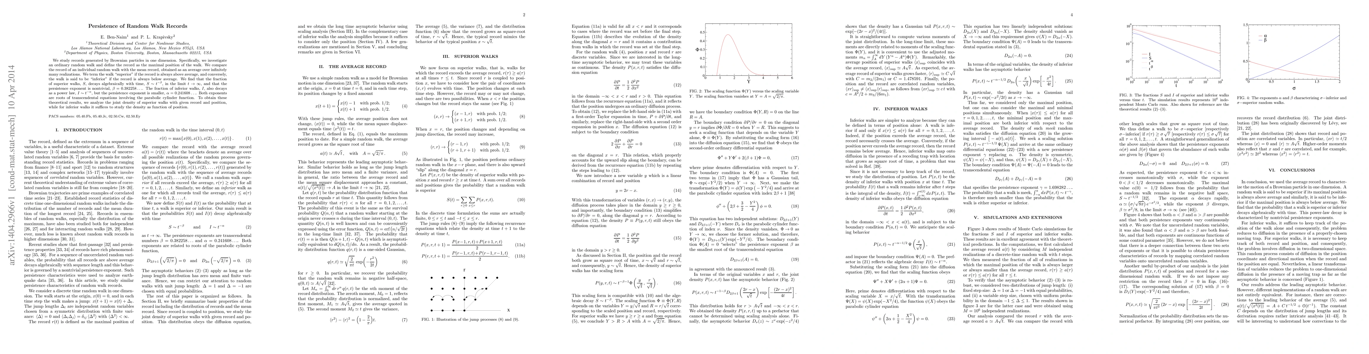 We study records generated by Brownian particles in one dimension. Specifically, we investigate an ordinary random walk and define the record as the maximal position of the walk. We compare the record of an individual random walk with the mean record, obtained as an average over infinitely many realizations. We term the walk "superior" if the record is always above average, and conversely, the walk is said to be "inferior" if the record is always below average. We find that the fraction of superior walks, S, decays algebraically with time, S ~ t^(-beta), in the limit t --> infty, and that the persistence exponent is nontrivial, beta=0.382258.... The fraction of inferior walks, I, also decays as a power law, I ~ t^(-alpha), but the persistence exponent is smaller, alpha=0.241608.... Both exponents are roots of transcendental equations involving the parabolic cylinder function. To obtain these theoretical results, we analyze the joint density of superior walks with given record and position, while for inferior walks it suffices to study the density as function of position.