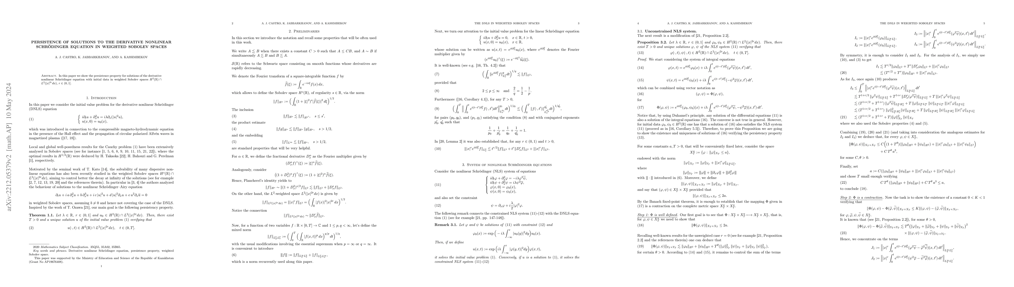 Summary: This paper demonstrates the persistence of solutions for the derivative nonlinear Schrödinger equation when initial data are in weighted Sobolev spaces $H^{2}(\mathbb{R})\cap L^2(|x|^{2r}dx)$, where $r$ ranges from 0 to 1. The study highlights the stability of solutions in these specific function spaces.
