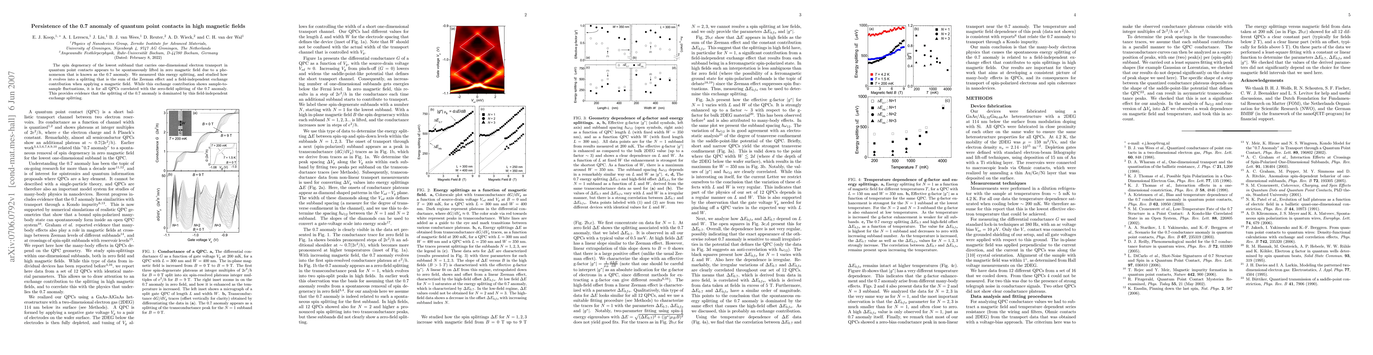 The 0.7 anomaly in quantum point contacts persists even in high magnetic fields, primarily due to a field-independent exchange contribution, as demonstrated by the correlation between zero-field splitting and splitting under magnetic fields. This suggests that the anomaly's energy splitting is dominated by this exchange contribution.