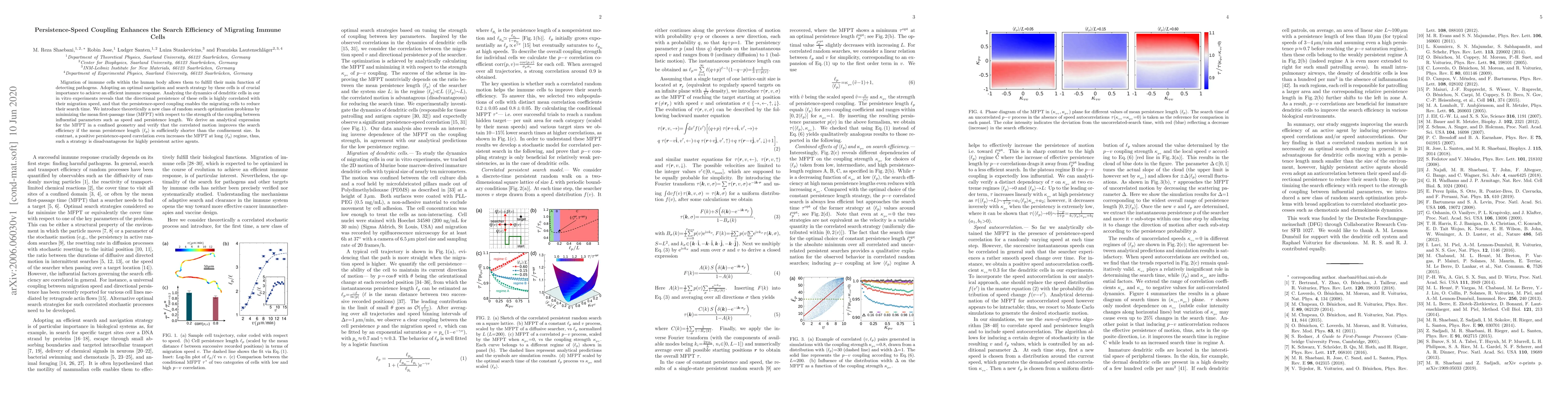 Migration of immune cells within the human body allows them to fulfill their main function of detecting pathogens. Adopting an optimal navigation and search strategy by these cells is of crucial importance to achieve an efficient immune response. Analyzing the dynamics of dendritic cells in our in vitro experiments reveals that the directional persistence of these cells is highly correlated with their migration speed, and that the persistence-speed coupling enables the migrating cells to reduce their search time. We introduce theoretically a new class of random search optimization problems by minimizing the mean first-passage time (MFPT) with respect to the strength of the coupling between influential parameters such as speed and persistence length. We derive an analytical expression for the MFPT in a confined geometry and verify that the correlated motion improves the search efficiency if the mean persistence length is sufficiently shorter than the confinement size. In contrast, a positive persistence-speed correlation even increases the MFPT at long persistence length regime, thus, such a strategy is disadvantageous for highly persistent active agents.