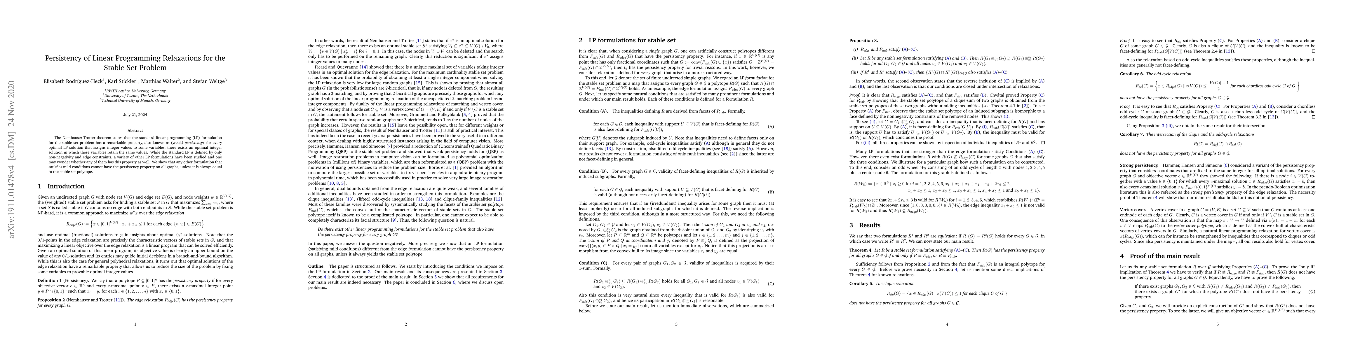 The Nemhauser-Trotter theorem states that the standard linear programming (LP) formulation for the stable set problem has a remarkable property, also known as (weak) persistency: for every optimal LP solution that assigns integer values to some variables, there exists an optimal integer solution in which these variables retain the same values. While the standard LP is defined by only non-negativity and edge constraints, a variety of other LP formulations have been studied and one may wonder whether any of them has this property as well. We show that any other formulation that satisfies mild conditions cannot have the persistency property on all graphs, unless it is always equal to the stable set polytope.