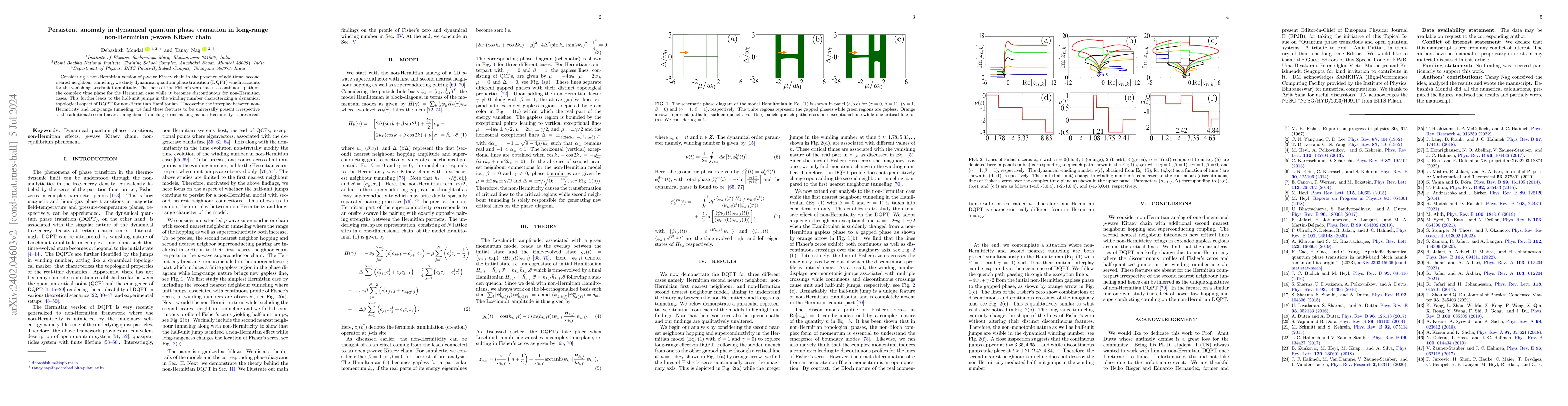 Considering a non-Hermitian version of $p$-wave Kitaev chain in the presence of additional second nearest neighbour tunneling, we study dynamical quantum phase transition (DQPT) which accounts for the vanishing Loschmidt amplitude. The locus of the Fisher's zero traces a continuous path on the complex time plane for the Hermitian case while it becomes discontinuous for non-Hermitian cases. This further leads to the half-unit jumps in the winding number characterizing a dynamical topological aspect of DQPT for non-Hermitian Hamiltonian. Uncovering the interplay between non-Hermiticity and long-range tunneling, we find these features to be universally present irrespective of the additional second nearest neighbour tunneling terms as long as non-Hermiticity is preserved.