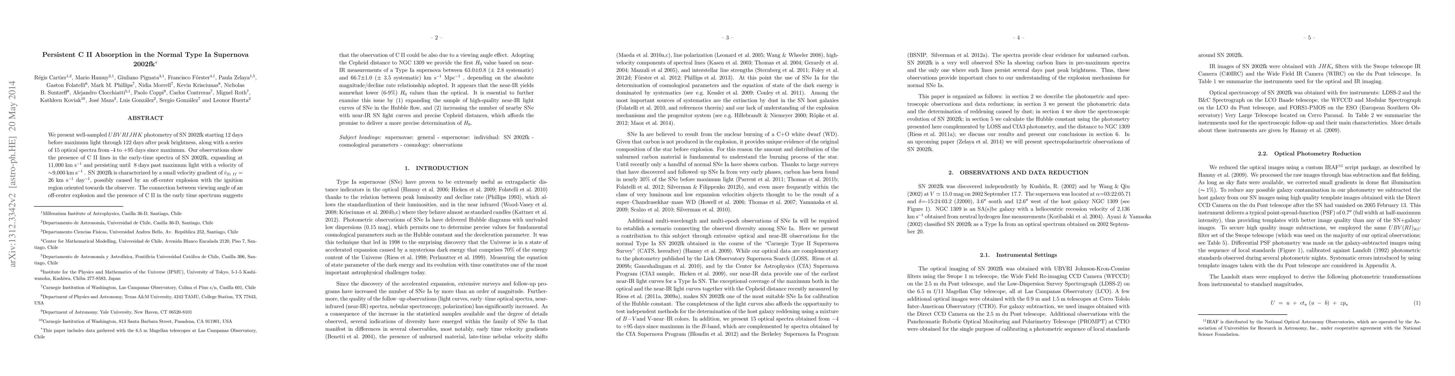 We present well-sampled $UBVRIJHK$ photometry of SN 2002fk starting 12 days before maximum light through 122 days after peak brightness, along with a series of 15 optical spectra from -4 to +95 days since maximum. Our observations show the presence of C II lines in the early-time spectra of SN 2002fk, expanding at ~11,000 km s$^{-1}~$ and persisting until ~8 days past maximum light with a velocity of $\sim$9,000 km s$^{-1}~$. SN 2002fk is characterized by a small velocity gradient of $\dot v_{Si~II}=26$ km s$^{-1}$ day$^{-1}$, possibly caused by an off-center explosion with the ignition region oriented towards the observer. The connection between viewing angle of an off-center explosion and the presence of C II in the early time spectrum suggests that the observation of C II could be also due to a viewing angle effect. Adopting the Cepheid distance to NGC 1309 we provide the first $H_{0}$ value based on near-IR measurements of a Type Ia supernova between 63.0$\pm$ 0.8 ($\pm$ 2.8 systematic) and 66.7$\pm$1.0 ($\pm$ 3.5 systematic) km/s/Mpc, depending on the absolute magnitude/decline rate relationship adopted. It appears that the near-IR yields somewhat lower (6-9 %) $H_0$ values than the optical. It is essential to further examine this issue by (1) expanding the sample of high-quality near-IR light curves of SNe in the Hubble flow, and (2) increasing the number of nearby SNe with near-IR SN light curves and precise Cepheid distances, which affords the promise to deliver a more precise determination of $H_0$.