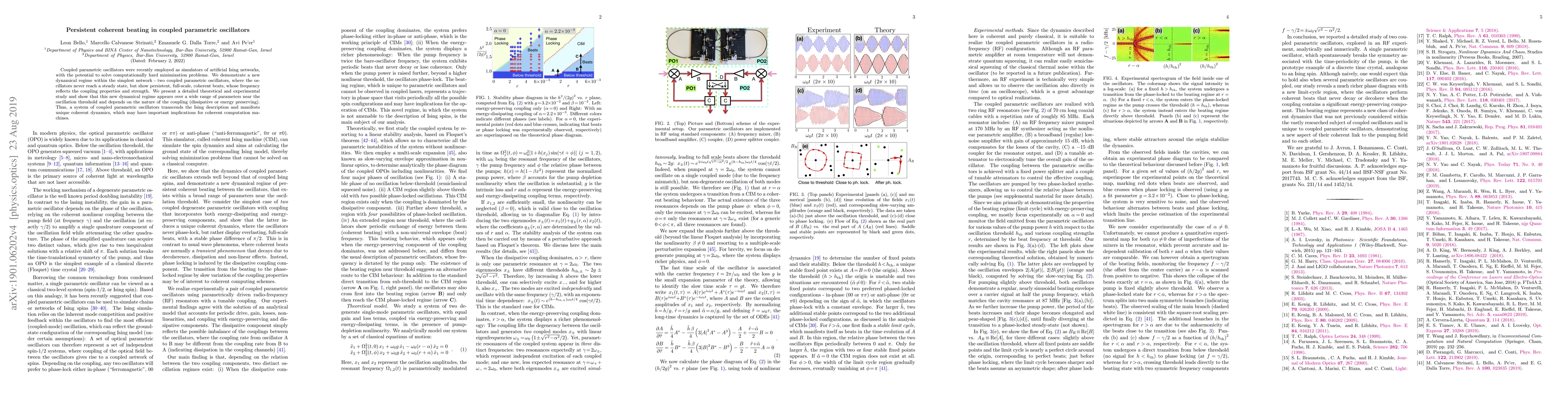 This paper explores a new dynamical regime in coupled parametric oscillators, demonstrating persistent coherent beating that never reaches a steady state. This behavior, which reflects coupling properties, emerges over a wide range of parameters near the oscillation threshold and may have implications for coherent computation.