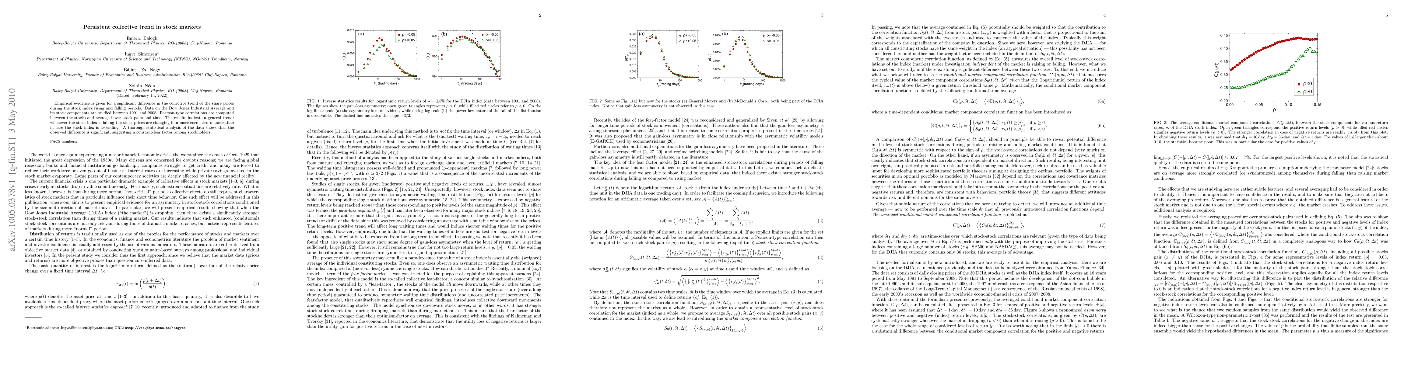Empirical evidence is given for a significant difference in the collective trend of the share prices during the stock index rising and falling periods. Data on the Dow Jones Industrial Average and its stock components are studied between 1991 and 2008. Pearson-type correlations are computed between the stocks and averaged over stock-pairs and time. The results indicate a general trend: whenever the stock index is falling the stock prices are changing in a more correlated manner than in case the stock index is ascending. A thorough statistical analysis of the data shows that the observed difference is significant, suggesting a constant-fear factor among stockholders.