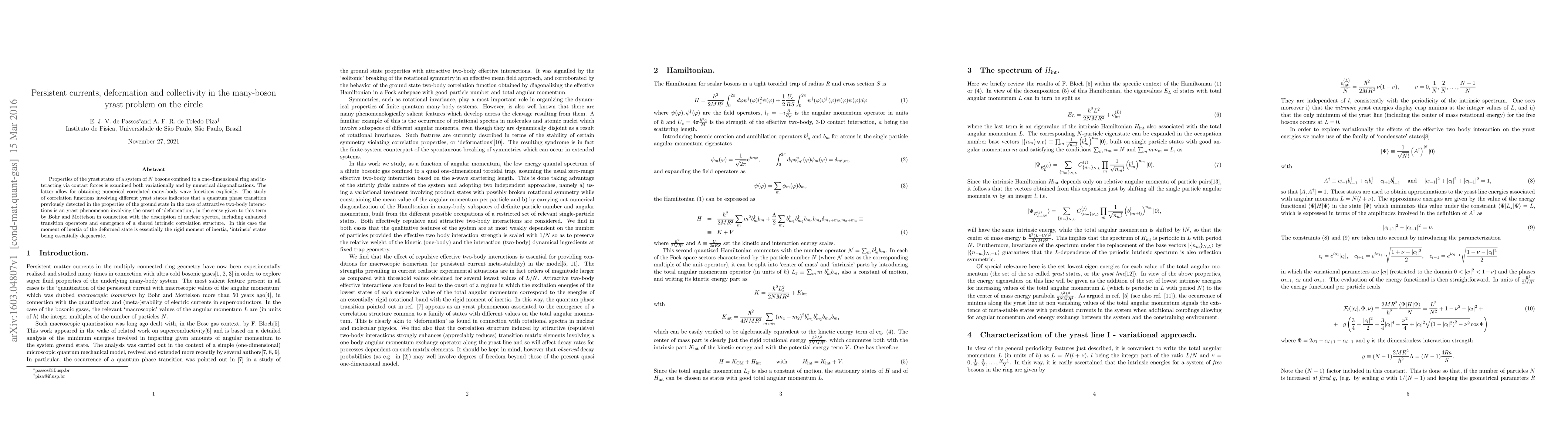 Properties of the yrast states of a system of $N$ bosons confined to a one-dimensional ring and interacting via contact forces is examined both variationally and by numerical diagonalizations. The latter allow for obtaining numerical correlated many-body wave functions explicitly. The study of correlation functions involving different yrast states indicates that a quantum phase transition previously detected in the properties of the ground state in the case of attractive two-body interactions is an yrast phenomenon involving the onset of `deformation', in the sense given to this term by Bohr and Mottelson in connection with the description of nuclear spectra, including enhanced transition operators and emergence of a shared intrinsic correlation structure. In this case the moment of inertia of the deformed state is essentially the rigid moment of inertia, `intrinsic' states being essentially degenerate.