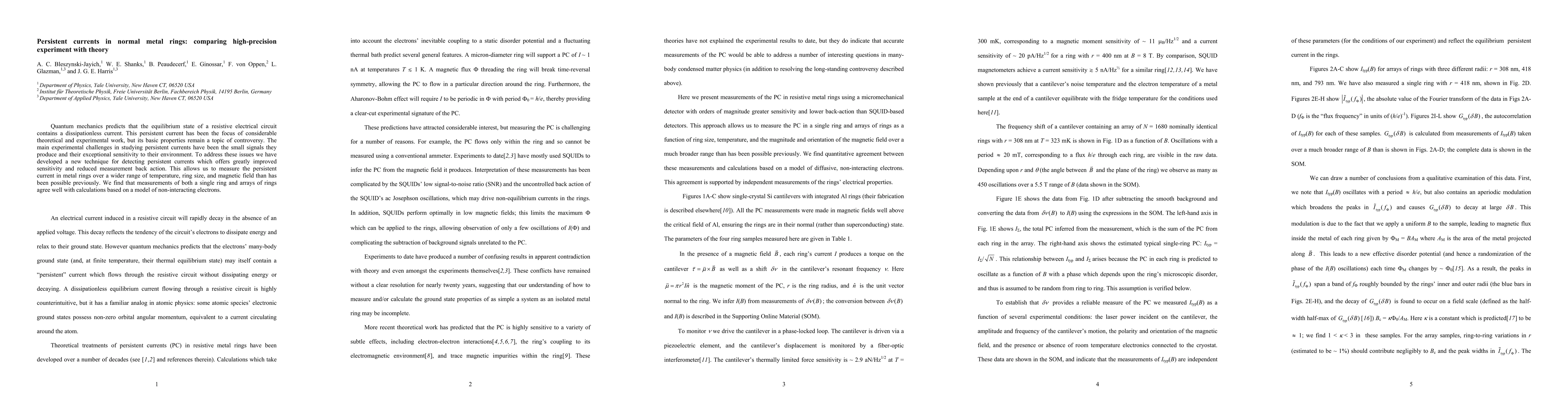 This paper reports on a new experimental technique for detecting persistent currents in normal metal rings, achieving improved sensitivity and reduced measurement back action. The results show good agreement between experimental measurements and theoretical predictions based on a model of non-interacting electrons across various temperature, size, and magnetic field conditions.
