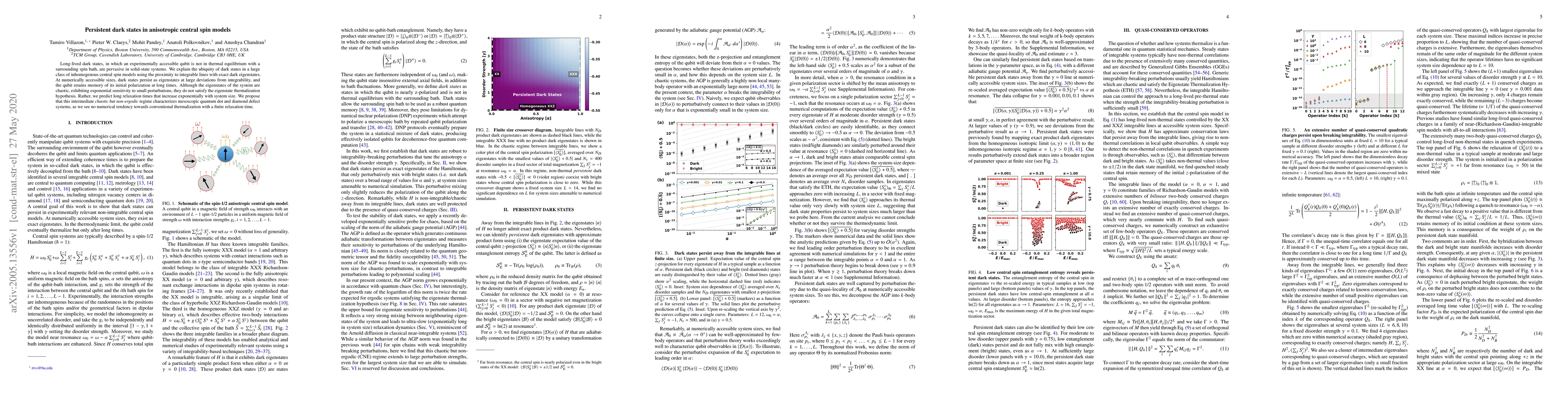 This paper explores the existence of persistent dark states in anisotropic central spin models, demonstrating that these states remain stable even at large deviations from integrability. The study reveals that these states exhibit long relaxation times, indicating a non-ergodic regime that characterizes certain mesoscopic quantum systems, thus challenging the eigenstate thermalization hypothesis.