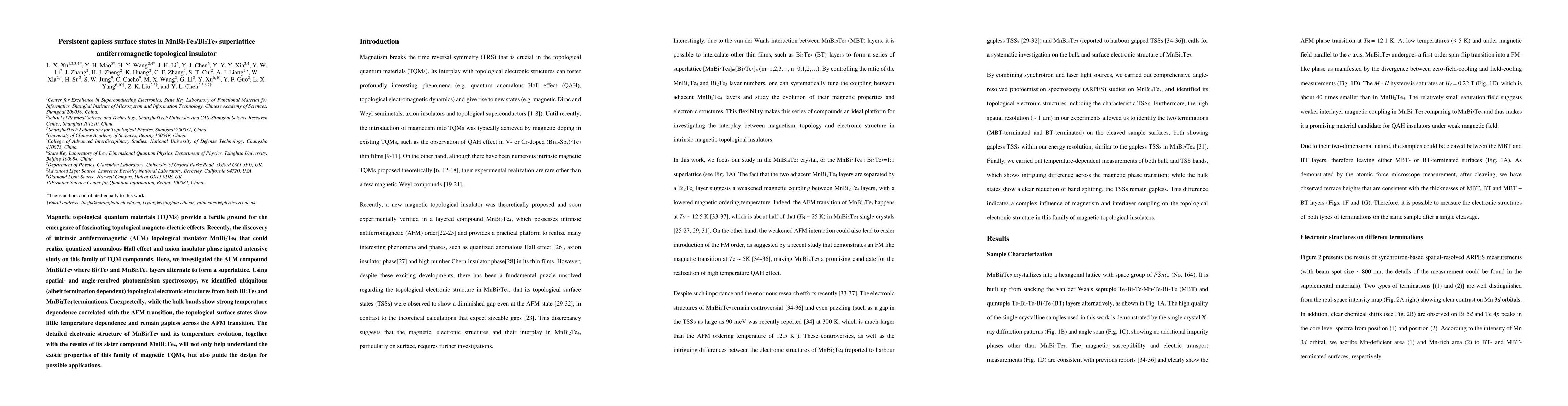 This study investigates the electronic structure of MnBi4Te7 superlattices, revealing persistent gapless surface states despite strong temperature dependence in bulk bands. The findings highlight the unique topological properties of magnetic topological quantum materials, aiding in understanding and potential applications.