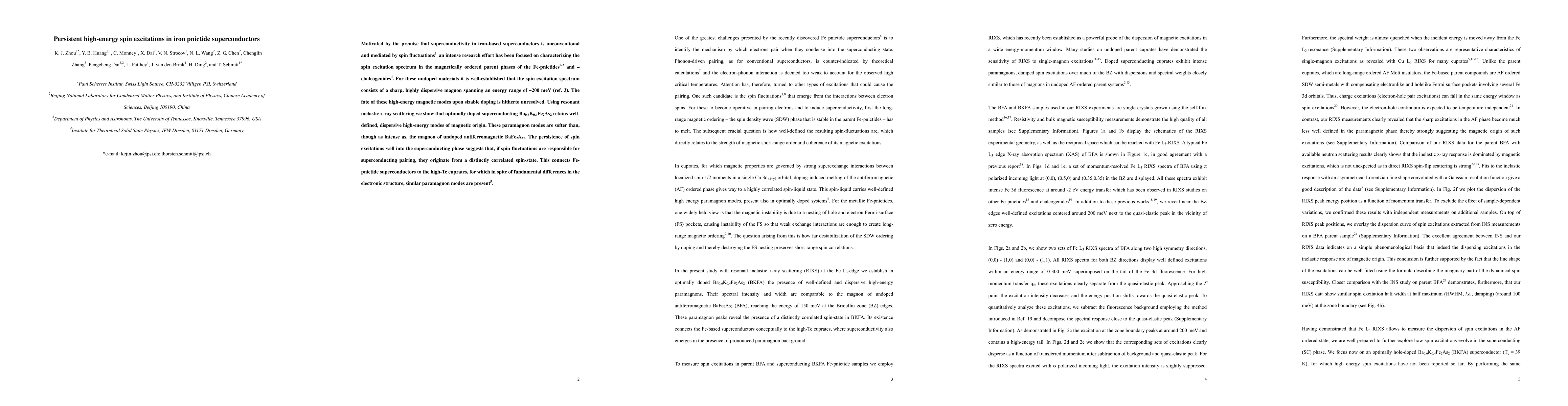 Motivated by the premise that superconductivity in iron-based superconductors is unconventional and mediated by spin fluctuations, an intense research effort has been focused on characterizing the spin excitation spectrum in the magnetically ordered parent phases of the Fe-pnictides2,3 and - chalcogenides4. For these undoped materials it is well-established that the spin excitation spectrum consists of a sharp, highly dispersive magnon spanning an energy range of up to 200 meV (ref. 3). The fate of these high-energy magnetic modes upon sizable doping is hitherto unresolved. Using resonant inelastic x-ray scattering we show that optimally doped superconducting Ba0.6K0.4Fe2As2 retains well defined, dispersive high-energy modes of magnetic origin. These paramagnon modes are softer than, though as intense as, the magnon of undoped antiferromagnetic BaFe2As2. The persistence of spin excitations well into the superconducting phase suggests that, if spin fluctuations are responsible for superconducting pairing, they originate from a distinctly correlated spin-state. This connects Fe-pnictide superconductors to the high-Tc cuprates, for which in spite of fundamental differences in the electronic structure, similar paramagnon modes are present5.