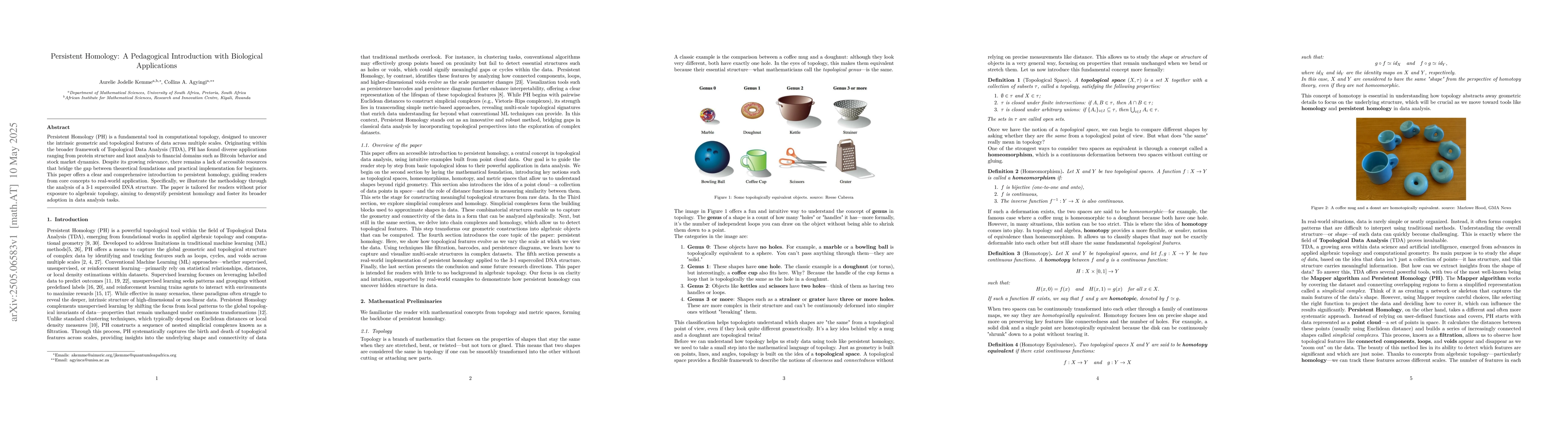 The paper employs a pedagogical approach to introduce persistent homology, aiming to make it accessible for beginners without prior exposure to algebraic topology. It illustrates the methodology through the analysis of a 3-1 supercoiled DNA structure.