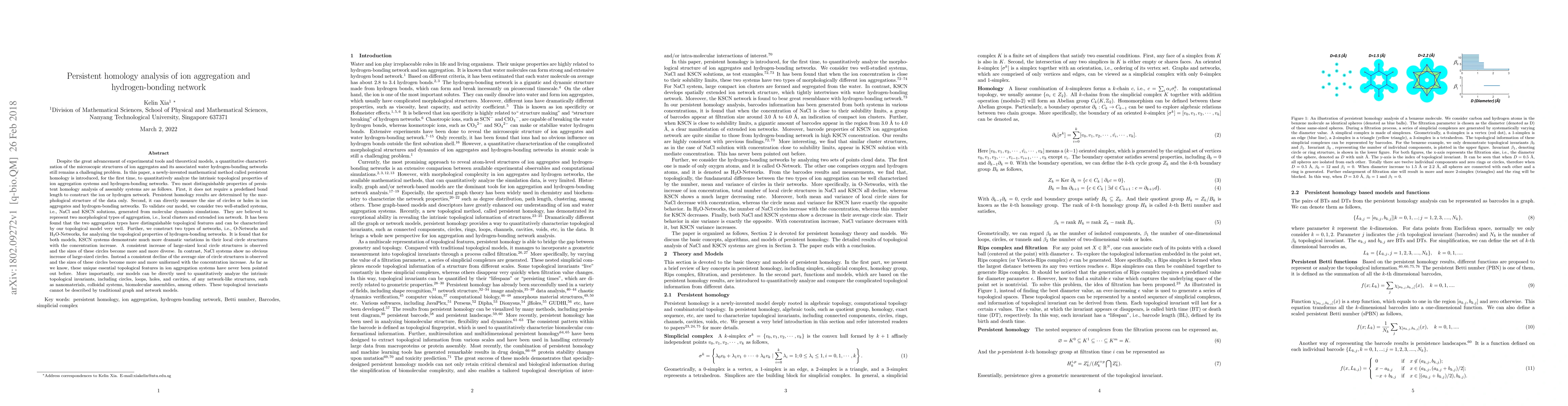 This paper introduces persistent homology to quantitatively analyze the topological properties of ion aggregation and hydrogen-bonding networks without predefined bond lengths, revealing distinct topological features in NaCl and KSCN solutions. KSCN systems show diverse large-sized circle structures, while NaCl systems exhibit uniform circle sizes.