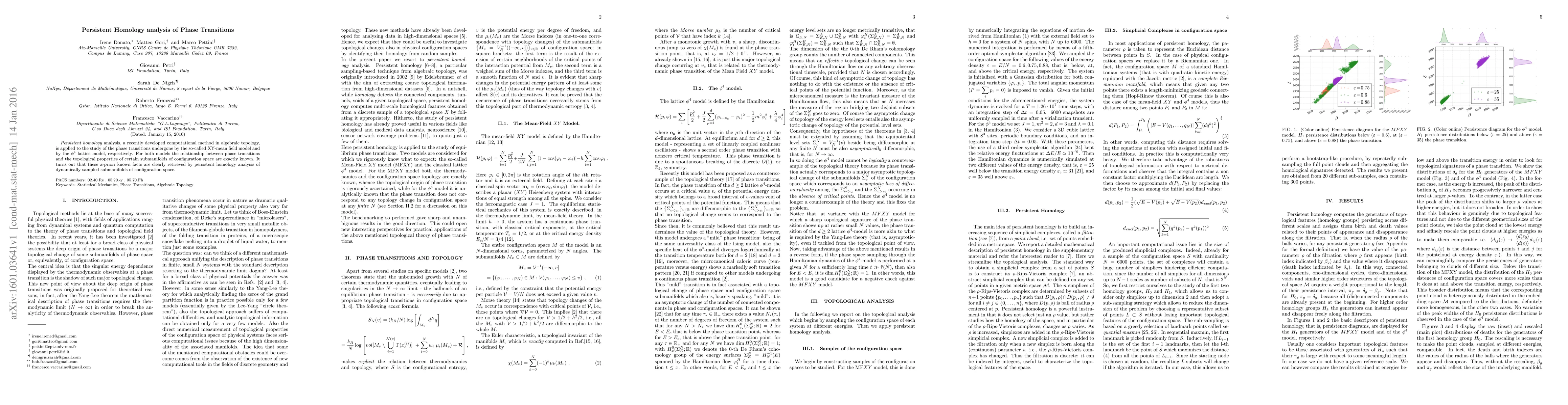 Persistent homology analysis reveals the topological properties of configuration spaces in XY-mean field and phi^4 lattice models, accurately retrieving known relationships between phase transitions and these properties. This computational method reaffirms the connection between topological features and phase transitions.