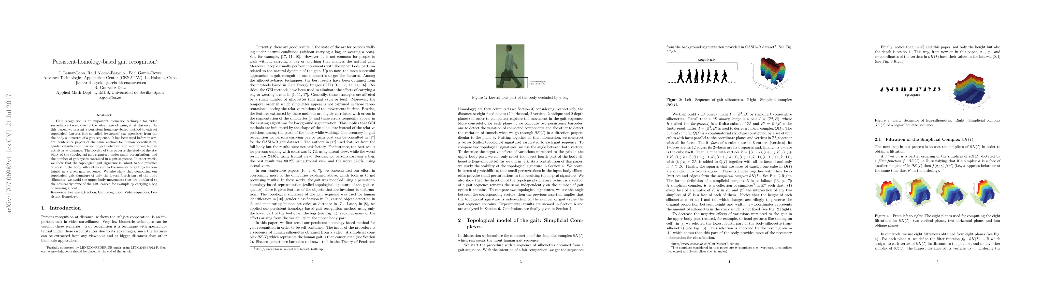 This paper introduces a persistent homology-based method for extracting topological features from body silhouettes to recognize gait patterns. It demonstrates the robustness of the topological gait signature to noise and variations in the number of gait cycles, and highlights its effectiveness using only the lower body for more accurate identification.