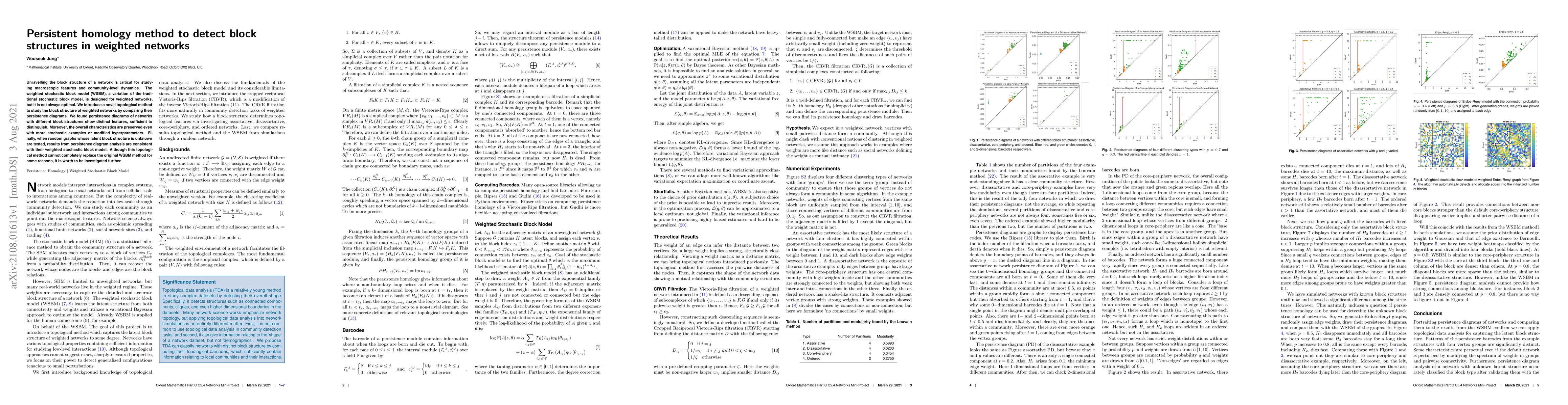 This paper introduces a novel topological method using persistent homology to detect block structures in weighted networks, showing that persistence diagrams can distinguish different block structures effectively. While not a complete replacement for the weighted stochastic block model, the method offers a promising alternative for analyzing community dynamics in weighted networks.