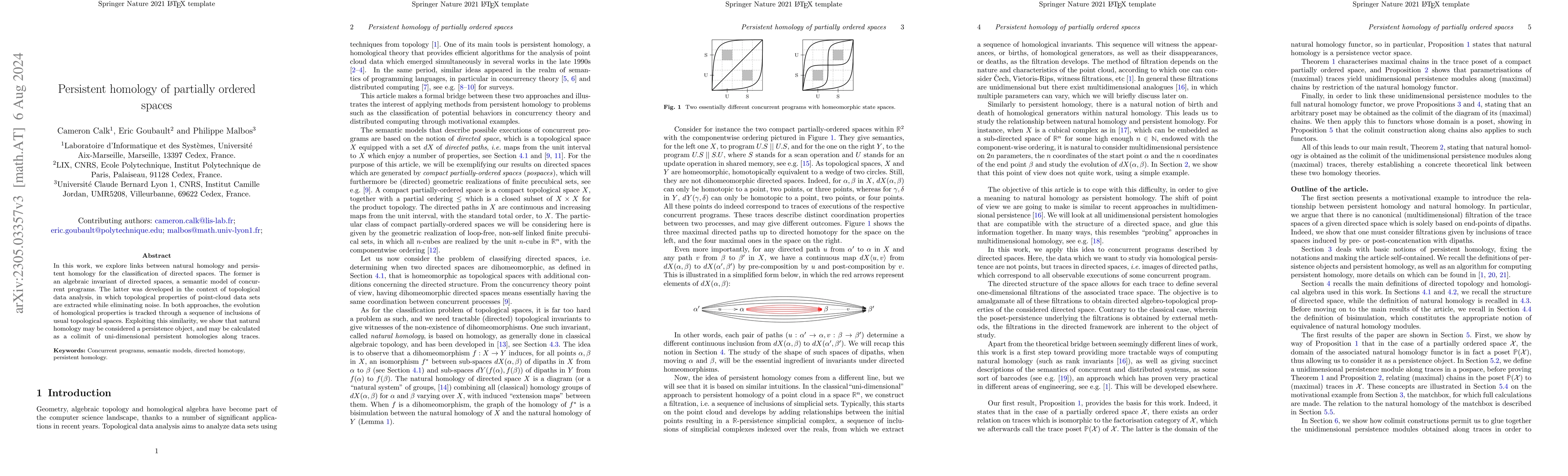 In this work, we explore links between natural homology and persistent homology for the classification of directed spaces. The former is an algebraic invariant of directed spaces, a semantic model of concurrent programs. The latter was developed in the context of topological data analysis, in which topological properties of point-cloud data sets are extracted while eliminating noise. In both approaches, the evolution homological properties are tracked through a sequence of inclusions of usual topological spaces. Exploiting this similarity, we show that natural homology may be considered a persistence object, and may be calculated as a colimit of uni-dimensional persistent homologies along traces. Finally, we suggest further links and avenues of future work in this direction.