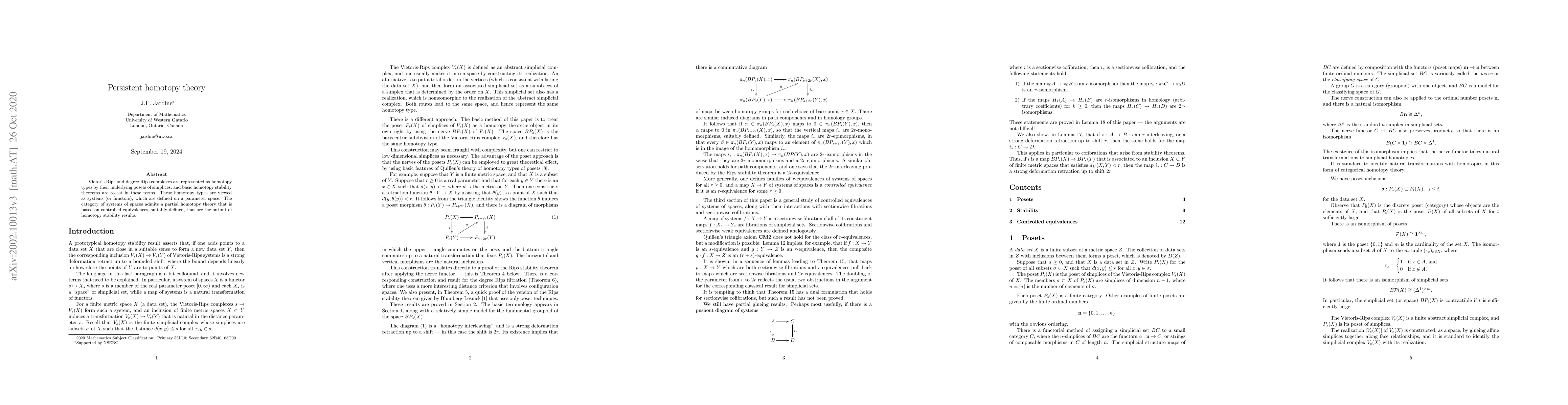 Vietoris-Rips and degree Rips complexes are represented as homotopy types by their underlying posets of simplices, and basic homotopy stability theorems are recast in these terms. These homotopy types are viewed as systems (or functors), which are defined on a parameter space. The category of systems of spaces admits a partial homotopy theory that is based on controlled equivalences, suitably defined, that are the output of homotopy stability results.
