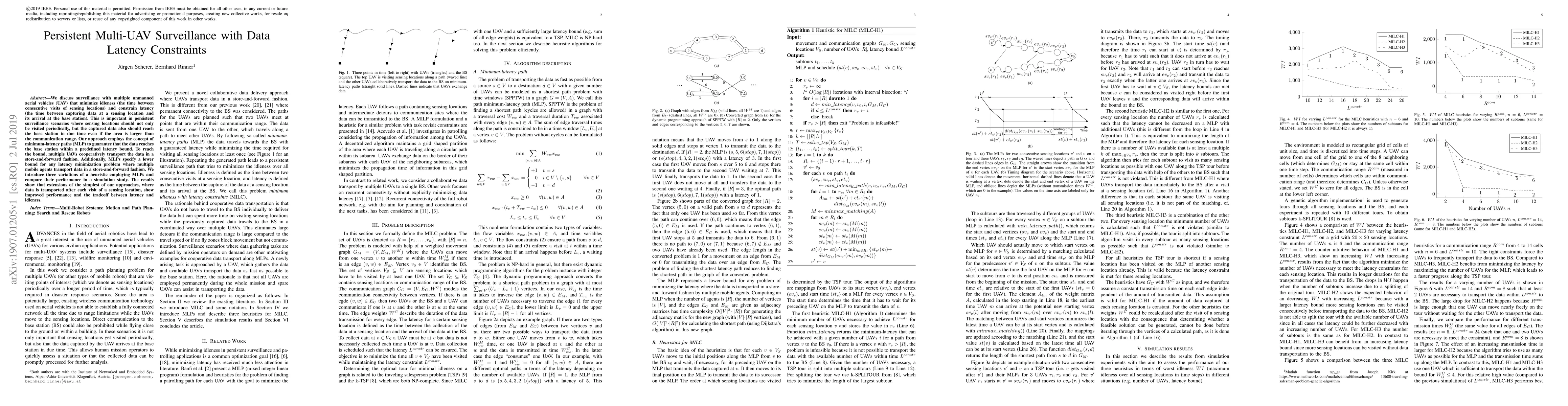 This paper proposes a method for persistent multi-UAV surveillance that minimizes idleness and data latency using minimum-latency paths (MLP). The study introduces three heuristic variations employing MLPs and demonstrates improved performance in simulations, highlighting the trade-off between latency and idleness.